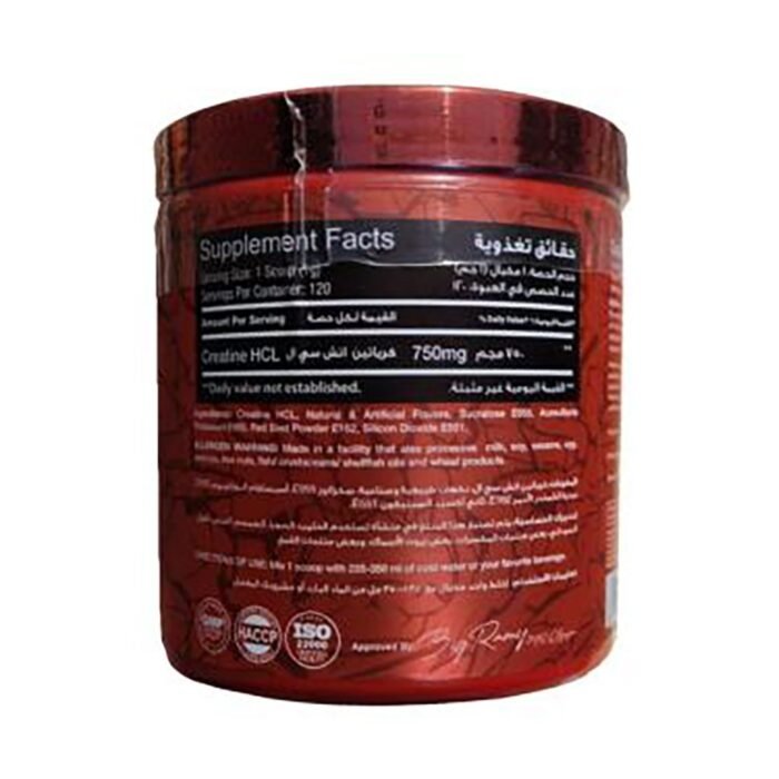 يوفر الكرياتين هيدروكلوريد (HCL) قابلية ذوبان فائقة وتوافر حيوي لا مثيل له لتغذية عضلاتك بسرعة. يقدم الكرياتين HCL شكلاً من أشكال الكرياتين قد يكون أسهل على معدتك من الكرياتين أحادي الهيدرات العادي. يقدم الكرياتين HCL معيارًا جديدًا للرافعين الذين يبحثون عن حل الكرياتين عالي الذوبان في أنظمة التدريب والمكملات الخاصة بهم. الذوبان الأكبر هو السبب في الحاجة إلى جرعة أقل بكثير.